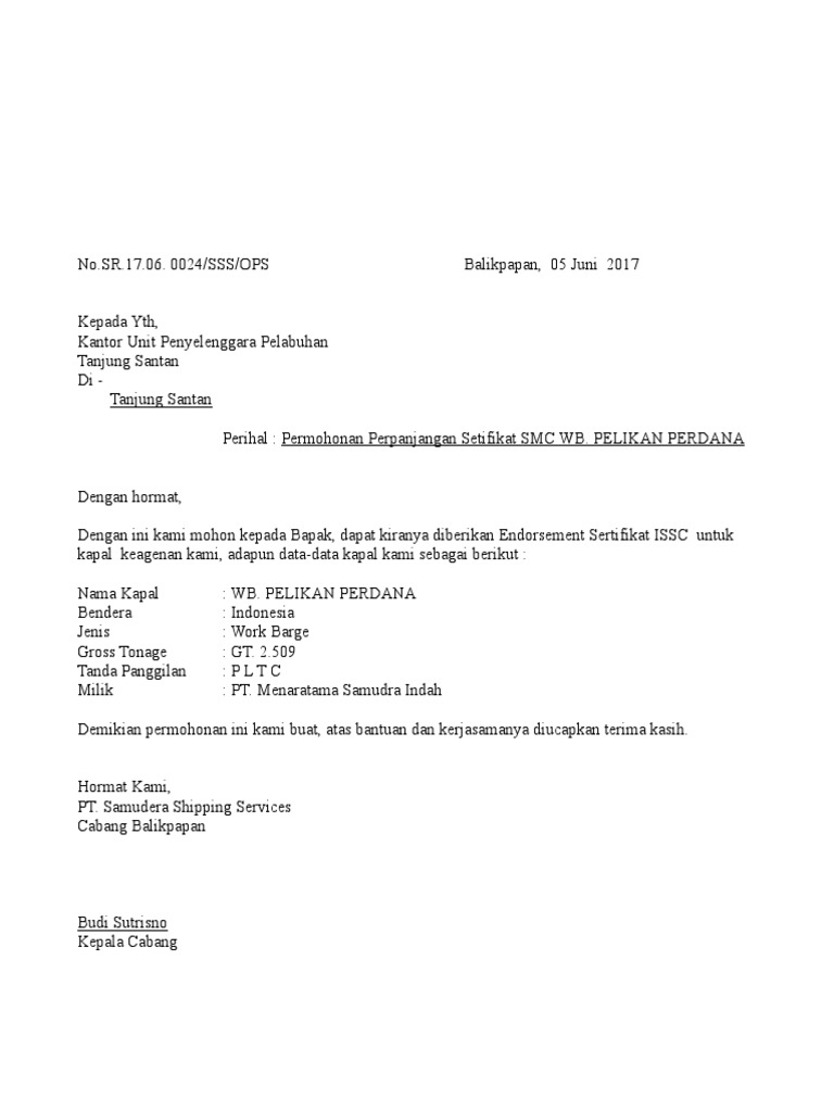 Contoh Surat Permohonan Untuk Pemeriksaan Kapal